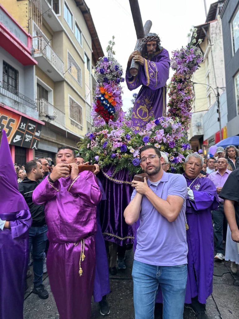 El alcalde del municipio Libertador, Nelson Álvarez, presente en la ceremonia, destacó la importancia de acompañar al Nazareno en este día significativo. «Cada encuentro en oración nos ayuda a ser más fuertes de espíritu y a trabajar por un mundo más justo y noble», afirmó.